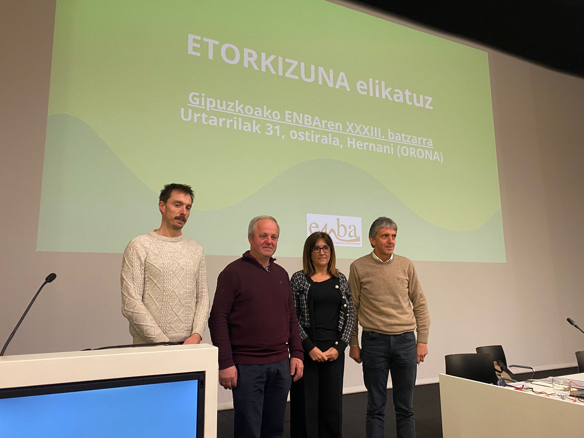 Esta mañana, 31 de Enero, el sindicato agrario ENBA ha celebrado su XXXIII. Asamblea en la sede de la Fundación Orona de Hernani donde se han reunido baserritarras, amigos, agentes del sector y autoridades locales (Xabier Lertxundi, alcalde de Hernani, Xabier Arruti, diputado de Equilibrio Territorial Verde de Gipuzkoa y Amaia Barredo, consejera de Alimentación, Desarrollo Rural, Agricultura y Pesca). Tras el saludo inicial, el sindicato agrario ENBA ha aprobado las cuentas de la asociación y las de la cooperativa ENARO.